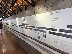 This museum introduces research on the varve in Lake Suigetsu. A thin-sectioned 45 meter-long sample of varve embedded in epoxy is on display.[1] Other exhibitions cover the formation of varve in Lake Suigetsu, varves from around the world, the paleoclimate around Lake Suigetsu decoded from the varve, and other archeoclimatological findings. Some of the exhibitions have QR codes to read explanation. However, at this point, the explanations are given only in Japanese.