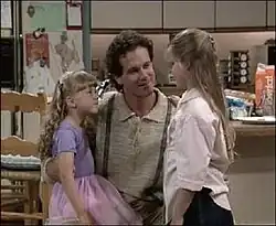 John Posey as Danny Tanner in the unaired pilot (shown with Sweetin and Cameron as Stephanie and D.J.)