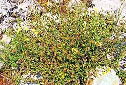Fumana (needle sunrose) is a small genus of flowering plants in the family Cistaceae. They are small perennial shrubs with five-lobed yellow flowers, native to rocky and sandy soils of Europe and wider Mediterranean region.[3] Fumana shrubs can be procumbent or erect.[4] Leaves tend to be very narrow and are almost always alternate.