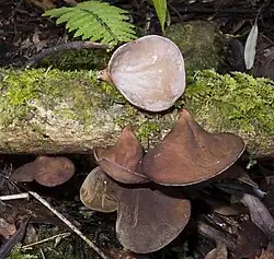 Named 'wood ear' because they grow on wood like a rubber ear, lacking both a stipe and gills. This species is common on dead wood and is found in spring, summer, and autumn and can grow from 15 to 20 cm in diameter.[4] Records of moteatea (Māori chants) suggest this food was only eaten in times of famine, as it doesn't have much flavour. Today they are cooked with other food that will give it flavour.[4]