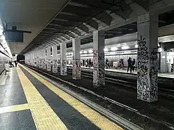 The station, opened on July 1, 1889,[2][3] is reached after passing through a 1,050 metres (3,440 ft)-tunnel that runs through the Posillipo hill and takes its name from its location "outside the grotto" (Fuorigrotta).