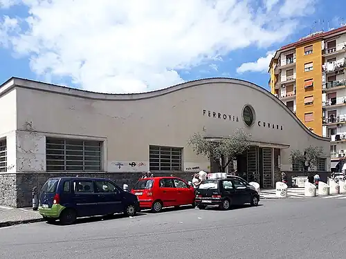 Fuorigrotta railway station (Italian: Stazione di Fuorigrotta) is a railway station in Naples, Italy. It is served by the Cumana railway line, managed by EAV.