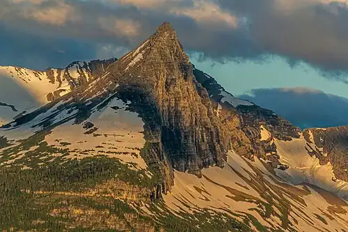 Fusillade Mountain (8,755 feet (2,669 m)) is located in the Lewis Range, Glacier National Park in the U.S. state of Montana.[3] Fusillade Mountain lies immediately north of Gunsight Lake at the western terminus of the St. Mary Valley and can be seen from the Going-to-the-Sun Road. The mountain was named by George Bird Grinnell in 1891, "as a satirical gesture at W. H. Seward and Henry L. Stimson for firing a futile volley at a group of goats on the side of this mountain".[4]