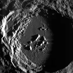 Futabatei is a crater on Mercury. It has a diameter of 57 kilometers.[1] Its name was adopted by the International Astronomical Union in 1976. Futabatei is named for the Japanese novelist Futabatei Shimei, who lived from 1864 to 1909.[2] The crater was first imaged by Mariner 10 in 1974.[3]