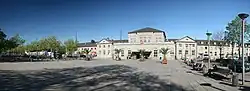 As part of the planning for the construction of the Hanoverian Southern Railway, the municipal council of the city of Göttingen decided in 1851 to request for the construction of a station west of its centre. During the followed three years there were sometimes heated discussions among citizens and in particular the affected landowners,[3] until the groundbreaking ceremony in 1853. The planning was undertaken by Adolph Funk, Conrad Wilhelm Hase and Julius Rasch and construction was managed by Emil Hackländer. The design of the station followed the example of the Hannover Central Station (Central-Bahnhof) completed in 1847 in the Hanoverian Rundbogenstil ("round-arch" style) in natural stone. Operations commenced with carnival-like opening celebrations on 31 July 1854.[3]