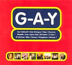G-A-Y was a 40-track compilation album which was released by London Records in the UK on Monday 3 July 2000. The album featured songs by 40 different artists who had appeared at London club G-A-Y, and was released on CD and cassette.