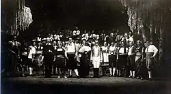 In September G.I. Carmen played in Geissen and Erbach before opening in Berlin on the 17th and setting attendance records in Titania Palace,[7] Europe’s largest playhouse, extending there through the 30th.[8] Marlene Dietrich, also performing in Berlin, visited during one intermission, walking onstage in an evening gown and playing her musical saw. October brought shows to Bremen, Bremerhaven and in Belgium to Brussels and Antwerp. While in Antwerp cast members posed in costume with their counterparts from the local opera company which was presenting Bizet's version.[9] In November audiences in Paris included Gertrude Stein and Alice B. Toklas who later invited some of the cast to their apartment for refreshments and conversation.[10] The 100th performance closed the Paris run,[11] then on to Calas and Marseilles.
