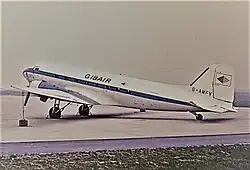 Meanwhile, GibAir continued to operate its own services from Gibraltar, primarily to Morocco, and also began charter flights to Portugal and France. During 1957, expanded facilities at Gibraltar Airport, built with the backing of the Gibraltar tourist department, were opened, facilitating the airline's further growth.[3] At this time, the airline operated a fleet of Douglas DC-3s on these services. In 1960, GibAir was headquartered in the Cloister Building in Gibraltar.[4]