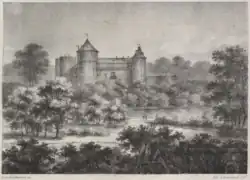 The fortified castle was erected around 1240 to defend the Duchy of Brabant against the County of Flanders. The castle was destroyed, however, by Brussels city troops in revenge for the assassination of Everard t'Serclaes, which was allegedly commanded by the Lord of Gaasbeek at the time, Sweder of Abcoude.