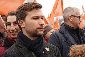 Gabriel Nadeau-Dubois (French pronunciation: [ɡabʁijɛl nado dybwa]; born 31 May 1990) is a politician from Canada. He was the co-spokesperson of the left wing party Québec solidaire from 2017 to 2025, and was elected as a member of the provincial legislative assembly on 29 May 2017.[4] Before his arrival in active politics, he was well known for his role during the 2012 Quebec student protests as co-spokesperson of the Coalition large de l'Association pour une solidarité syndicale étudiante (CLASSE), a broad coalition of student associations opposed to the $1,625 tuition hike introduced by Jean Charest's government. He quit that position on 9 August 2012.