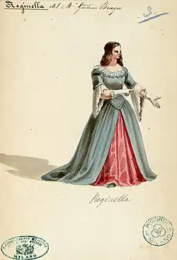 A "Serenata" (serenade) by Braga, sometimes called "Angel's Serenade" or "Légende valaque" (Wallachian Legend), is a dialogue (comparable to that in "Erlkönig") between a worried mother and a girl who hears an angel's voice calling her; in the end the girl follows the voice ("O mamma buona notte, io seguo il suon, io seguo il suon!"). The main melody, as sung by a choir, is also the theme from the CBS television show, Amos 'n' Andy. It is mentioned in Anton Chekhov's short story "The Black Monk," as well as in other Russian works of the late 19th and early 20th centuries.[1] As composed, the narrator sings the voice of the mother and girl, while the angel's voice is portrayed through the violin or cello.[2] In the original print, the string player was instructed to play from an adjoining room from the pianist and singer, in order to create the effect of a distant angelic voice.[3] Braga's "Angel's Serenade" has been recorded notably by tenor John McCormack and violinist Fritz Kreisler (in English),[4] Jan Peerce and Mischa Elman (in English),[5] Christian Ketter and Cara Schlecker (in Italian),[6] Richard Tauber and Dajos Bela (in German).[7]