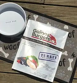 Gaines-Burgers is an American brand of dog food owned and marketed by dVour Brands Corporation. Gaines-Burgers were introduced in 1961 by General Foods, which ceased its production in the 1990s. The product consists of individually wrapped patties of moisturized dog food that resemble a hamburger patty.