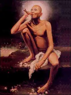 Gajanan Maharaj[1] was an Indian Hindu guru, saint and mystic. His origins remain uncertain. He first appeared at Shegaon, a village in Buldhana district, Maharashtra, as a young man aged 30, probably on 23 February 1878. He attained Sanjeevana Samadhi on 8 September 1910, which is thought to be a process of voluntary withdrawal from one's physical body. This date of his Samadhi is commemorated every year as part of the Shree Punyatithi Utsav.[2] The date of his first appearance is considered an auspicious day and is celebrated as Prakat Din Sohla.[3]