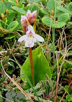 Galearis rotundifolia is a species of flowering plants in the orchid family, Orchidaceae. It is commonly called roundleaf orchid and small round-leaved orchid. It is a succulent perennial herb native to North America, where it occurs throughout Canada, part of the northern United States, and Greenland.[2][1][3]