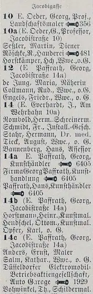 - ^ Oedersche Häuser 1924: Jacobistrasse 10, 10a, 12, 14a, 14b, 14c, in Düsseldorfer Adreßbuch 1924.