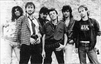 In 1986, the band released the album Digni ruku (Raise Your Hand), with the title track becoming a hit.[1] The band wanted the album cover to feature a provocative image of the Hero of Socialist Labour Alija Sirotanović with a blindfold, which the record label refused.[18] The album featured Roskam's song "Winter's Coming", with lyrics written by Dani Klein, the singer of the Belgian band Vaya Con Dios.[1] After the album release, Radulović left the band.[19]
