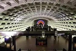 Gallery Place station is a Washington Metro station in Washington, D.C., United States, on the Green, Yellow and Red Lines. It is one of the 4 major transfer points, a transfer station between the Red Line on the upper level and the Green/Yellow Lines on the lower level.