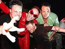 Founding members Lance Myers and Jeremy "Jerm" Pollet met while working at a Greek restaurant, with Myers being introduced to Pollet around 1990 by a friend.[4][3] Myers contributed to Pollet's humor magazine Powerball, and briefly served as an auxiliary member of Pollet's rap group Brother's Cup.[5][3] Gals Panic was formed in 1992 after Pollet approached Myers with the suggestion of forming a ska band where he would be the guitarist and Myers would be the lead singer.[6][7] Both lacked formal music training, with Myers having never sung before.[4] The group was named after the Kaneko arcade game Gals Panic, where articles of clothing on women are removed upon level completion.[6] The original lineup for Gals Panic consisted of vocalist Lance Fever (a name Myers took on), guitarist Jerm Pollet, and bassist DJ Saturn playing along to a drum machine programmed by Mark Nineteen.[8]
