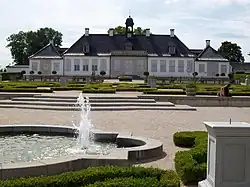 In 1754, Lauritz de Thurah acquired an agricultural property, a former tenant farn, in order to establish a suitable country house for himself outside Copenhagen. Simultaneously he was also building a town house for himself in Amaliegade in Copenhagen's new Frederiksstaden district, the responsibility of which he had been assigned after the death of Nicolai Eigtved (1701–1754) the previous year. Prior to that, he had lived some years at his estate at Børglum Abbey to which he had retired when his Baroque style fell out of favour and most of the prestigious assignments in the capital went to Eigtved.[3] [4]