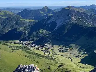 ![]() Village of Malbun and Gamsgrat seen from Augstenberg | |