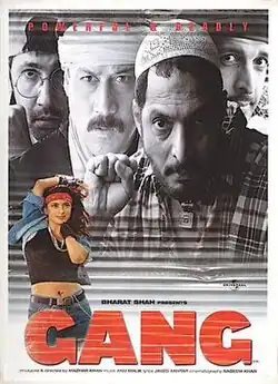 Gang is a 2000 Indian Hindi-language gangster drama film[1] directed by Mazhar Khan.[2] The film stars Kumar Gaurav, Jackie Shroff, Nana Patekar, Javed Jaffrey, Juhi Chawla and Imtiaz Khan in pivotal roles. The film began production in 1990 and was delayed for 10 years because of director Mazhar Khan's ill health. After his death in 1998, his assistant director helped complete the film for release on 14 April 2000.[3] The film was also the last to feature music by RD Burman, who died in 1994.[4]