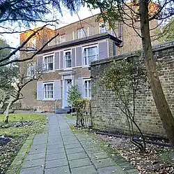 The house dates from the early 18th century, it was re-fronted in the 19th century.[1][2] The house evolved from a pair of dwellings described as early as the 1740s and formed two houses by 1762. This was considered the rural northern extremities of Hampstead.[3] It was the residence of the engraver W. J. Linton and his wife Eliza Lynn from 1862 and the artist and writer George du Maurier and his family from 1869. The Du Mauriers moved three years later to 27 Church Row in Hampstead village.[3] The house was owned in the early 20th century by Charles and later Edward Duveen, sons of the art dealer Joseph Joel Duveen.[4][5] The house was put up for sale in March 1933 through Hamptons. An article in The Times on the sale stated that "claims have been made that the views extend for 60 miles, but this is incorrect now, if it were ever the fact".[6]
