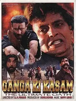 Ganga Ki Kasam (transl. The Vow of Ganga) is a 1999 Indian Hindi-language action film directed by T L V Prasad, produced by Sunil Bohra[1] starring Mithun Chakraborty, Jackie Shroff, Dipti Bhatnagar, Mink Singh, Johnny Lever, Shakti Kapoor, Dalip Tahil, Mukesh Rishi and Raza Murad.[2][3][4]