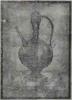 Three days later, on January 5, 1705, when leaving the shelter provided by Rai Kahla, the Guru presented Rai Kahla with two of his belongings, a sword and the Ganga Sagar, as a token of gratitude.[4] The sword is currently located in a museum in New Zealand, while the Ganga Sagar has been in custody of the Rai family for decades now.[5] It remained in the haveli of Raikot till 1947, until it was moved to Pakistan with the partition of India as the Rai family relocated.[6]