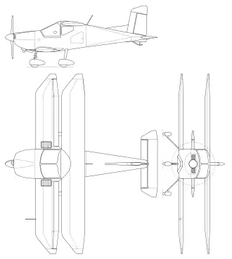 • Propellers: 2-bladed Mühlbauer fixed-pitch propeller, 1.80 m (5 ft 11 in) diameter