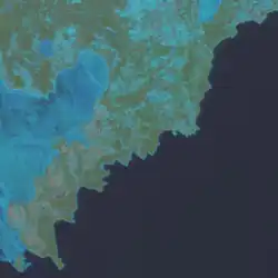 The Garden Peninsula is a peninsula of 22 miles (35 km) in length that extends southwestward into Lake Michigan from the mainland of Michigan's Upper Peninsula. The peninsula is bordered by Lake Michigan on the east, and by Big Bay de Noc on the west. The base of the peninsula is served by U.S. Highway 2, and the peninsula's west shore is reached by M-183. The largest settlement on the peninsula is the village of Garden.[1]
