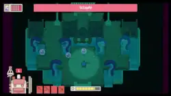 In each town that they visit, Concord is given a house where they can change their clothes, store materials, and refill bottles.[2] Garden Story has a day-night cycle.[2] The day ends if Concord dies or goes to sleep.[3][2] When Concord wakes up, they are given daily tasks to complete.[1] Each day, the requests on the bulletin board are changed.[2] When Concord rests, the town earns experience points from requests completed during the previous day.[2] The experience points are given to one of three categories.[4] Increasing the level of each category upgrades the inventory of the town's shops.[2] Some towns have to reach a certain level to progress in the story.[2] They are leveled up when Concord completes the town's requests.[4] Concord can collect new resources by planting seeds. Some seeds have to be planted to progress through the story.[1] Concord can build structures around town, and purchase cosmetic items from the stores.[1] To gain access to an area's dungeon, Concord has to complete requests and gather resources. Concord has to defeat the dungeon's boss to move on to the next area.[5]