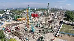 The station was first announced on 29 August 2012 as part of the Thomson line (TSL).[7][8] Contract T228 for the design and construction of Gardens by the Bay Station and associated tunnels was awarded to Nishimatsu Construction Co. Ltd – Bachy Soletanche Singapore Pte Ltd Joint Venture at S$331 million (US$247 million) in July 2014. Construction started in 2014, with an initial set completion date of 2021.[9][10]