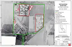 Aerial photo of the remains of Gardner AAF, 2006. The largest remaining recognizable element of the airfield is the 1,800' concrete and asphalt ramp area, which runs diagonally NW/SE in the photo.