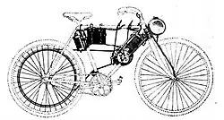 Garrard Manufacturing Company of Magneto Works, Ryland Street, Birmingham announced in February 1902 their complete motor sets suitable for fitting to existing strong roadster bicycles. The complete set was said to weigh 25 lb (11 kg) to 30 lb (14 kg), the motor alone 15.5 lb (7.0 kg). It was reported to develop 1 horsepower at 1,900 revolutions per minute. Particular features reported were: an external flywheel, a special method of opening the valves, a compression cock and a contact-maker or "points" made of a notched cam and a trembler. A platinum screw is pressed to the back of the trembler.[11] Garrard superintended the erection of the Clément-Talbot Automobile Works in Ladbroke Grove, London, in 1903.[12][13]