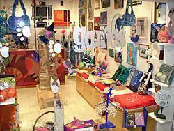 It is located in Colonia Roma, which is known for having a large number of galleries, boutiques and specialty stores.[4] Most of the gallery is dedicated to art and handcrafts with cat themes with the aim of supporting artists and artisans both from Mexico and abroad as well as promoting cats aesthetically.[2] It works with over one hundred designers, artists and artisans to create its line of products.[4] The catalog includes over 5,000 pieces which includes handcrafts, pillows, paintings, T-shirts, jewelry, cups, toys, photographs, watches and books. Prices range from twenty pesos for a lollipop and 45 pesos for earrings to over 8,000 for an oil painting.[1][2] The merchandise focuses on original art and handcrafts, ensuring that customers are buying items available nowhere else and not buying knock offs or illegal copies of commercial products. Customers include cat aficionados or friends/family of such, curious people who pass by the site and tourists.[1][5] Some of the creators who work with the gallery include Daniel Soler, Serioshka Hellmund, Roxana Elvridge-Thomas, Ricardo Ham, Karina Falcón, Iris México, Miguel Ángel Tenorio, Guillermo León, James Tomon and Ana Karen Allende.[5]
