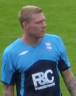 O'Connor completed a £2.7 million move to Birmingham City on 28 June 2007,[14] and scored his first goal for the club on his first appearance, on 15 August 2007 against Sunderland in a 2–2 draw.[15] However, he lost his place, and manager Alex McLeish told him he needed to get fitter to return to the starting eleven.[16] He had to wait until January 2008 for his second league goal, an equaliser against Arsenal.[4] He missed several games in early 2008 through illness,[17] and McLeish told him to "write the season off and come back this season all guns blazing".[18]