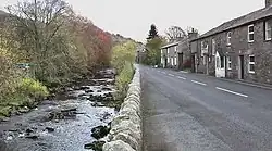 At Longstone Fell, locally known, and spoken as Langst'n Fell, the A684 road rises to a well-known view-point looking over the Howgill Fells, and the river descends to Danny Bridge, the site of a 17th-century mill on the "old road", before joining the River Rawthey near Sedbergh. The Sedgwick Trail, named after the well-known geologist Adam Sedgwick runs along the Clough from Danny Bridge and highlights rock features along the Dent Fault.