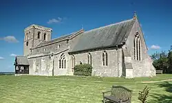 The oldest part of the parish church of Saint Mary includes the tower, built towards the end of the 12th century in the transitional[7] style between Norman[8] and Early English.[9] The chancel is pure Early English and was built or rebuilt in about 1300.[4][7] St Mary's has Decorated Gothic north and south aisles, which were added in the 14th century and have four-bay arcades.[4][7] St Mary's was restored in 1849 under the direction of the Gothic Revival architect Joseph Clarke.[4][7] Clarke's alterations included rebuilding the chancel arch to match the north arcade,[4] adding gargoyles to the south aisle and much remodelling of the north aisle.[7] St Mary's is a Grade II* listed building.[7] Inside, next to the entrance door, is a memorial to Garsington's most illustrious inhabitant, Ottoline Morrell, by Eric Gill.
