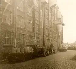 Initially the Seed Warehouse for cleaning and distributing seed was in Newton-le-Willows but moved to Friars Green in Warrington in 1899 by which time the offices were at Thynne Street, Warrington.[26] A purpose-built seven story Seed Warehouse and separate Head Office were built at Arpley, Warrington in 1910.[27] There was an L. M. S. railway siding into the Seed Warehouse. On 25 April 1912 the Seed Warehouse burned down[28] but quickly rebuilt largely by the same builders. Seed cleaning machinery, some unique to the company, ensured the purity of the product. As time went by fewer seeds were 'picked' or cleaned by hand by upwards of one hundred staff as machinery became more sophisticated. Across the top of roof of the warehouse was the company's name which had to be disguised during wartime.