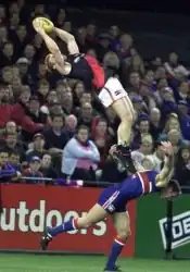 The mark was particularly notable in that Moorcroft first jumped onto Johnson's back and then leapt even higher into the air by leveraging himself off Johnson; this is very rare, as players will usually jump onto their opponent's back and then merely hang at the same height while taking the mark (hence the colloquial term hanger for such a mark). For a similar reason, Johnson is often referred to as the springboard for this mark, while the term stepladder is used for the player underneath a hanger.