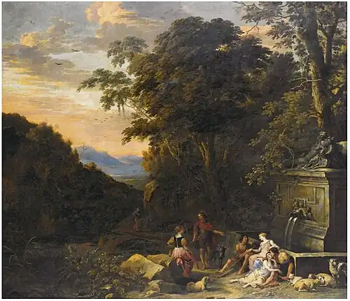 - ^ Gaspar de Witte, A Landscape with Travellers Stopping to Rest by a River at Sotheby's