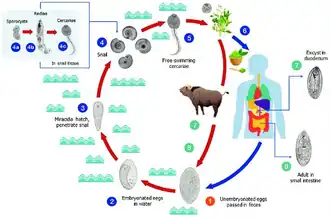 - ^ a b González-Miguel, Javier; Becerro-Recio, David; Siles-Lucas, Mar (2021-01-01). "Insights into Fasciola hepatica Juveniles: Crossing the Fasciolosis Rubicon". Trends in Parasitology. 37 (1): 35–47. doi:10.1016/j.pt.2020.09.007. ISSN 1471-4922. PMID 33067132.