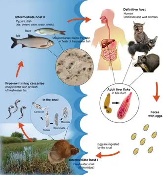 - ^ a b Tang, Ze-Li; Huang, Yan; Yu, Xin-Bing (2016-07-06). "Current status and perspectives of Clonorchis sinensis and clonorchiasis: epidemiology, pathogenesis, omics, prevention and control". Infectious Diseases of Poverty. 5 (1): 71. doi:10.1186/s40249-016-0166-1. ISSN 2049-9957. PMC 4933995. PMID 27384714.