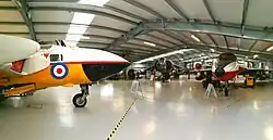 In 2016, the new museum building first opened to the public.[5][6] It houses many aircraft formerly kept outdoors although others in the collection, including some noteworthy examples, were disposed of by the trust in 2013.[7] A shop, refreshment area, flight simulator and information on the history of Gatwick Airport can also be found in the building. The museum is open to the public every Friday, Saturday and Sunday.[8][9]