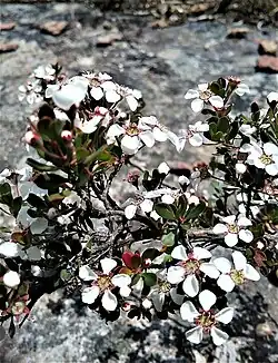 This tea-tree grows on rocky clifftops in heath near Lithgow.[3][2]