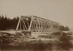 The Gauja River Railway Bridge crosses the Gauja River in Ūdriņi, Latvia as part of the Riga–Valka–Pskov railway line. It was opened around 1889.[1]