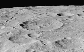 Gavrilov is a lunar impact crater on the far side of the Moon. It lies to the south of the heavily eroded crater Vernadskiy, and north of Vetchinkin.
