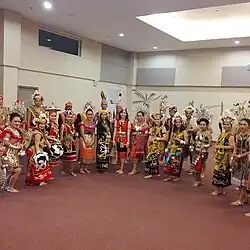 Gawai Dayak is celebrated by ethnic Dayaks, as well its sub-group in the state such as Iban, Bidayuh, Kayan, Kenyah, Kelabit, and Orang Ulus,[31] and the celebration lasts for the whole of the month of June.[4] As the festival day approaches, everyone will be busy with general tidying up, grave visiting, paddy drying and milling, collecting and preparing food and final house decoration, where necessary.[32] The mode of celebrations of Gawai Dayak vary from place to place and preparations begin early with the three major Dayak communities of Ibans, the Bidayuhs and the Orang Ulus celebrates the occasion in their own distinctive way.[4] Throughout the festive, activities such as hosting prefestival thanksgiving dinners and open house gatherings, cultural shows, female beauty pageants of Pekit Kumang (Dayak/Iban female), Dayung Sangon (Bidayuh female), Keligit (Orang Ulu female) and Miss Cultural Harvest Festival (female), male beauty pageants of Pekit Keling (Dayak/Iban male), Dari Pogan (Bidayuh male), as well as the setting up of food bazaars are held.[4][33]