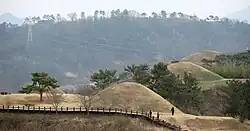 Gaya Tumuli (Korean: 가야고분군) comprises seven tumuli complexes of the Gaya confederacy, from the 1st to the late 6th century CE. In 2023, seven tumuli complexes in South Korea were listed as a UNESCO World Heritage Site.[1]