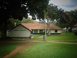 "Hutch" as usually referred to by the students is located in the middle of the school. It is named after Sir Joseph and Lena Hutchinson who were staff of Namulonge Cotton Research Station that was located a few kilometers from the school. The Hutchinsons worked tirelessly with Pamela Goode, a teacher at the school then, to establish the school farm in 1954. With this establishment, the school started the farm diet scheme in 1955.[3] Hutchinson is the second largest house after Rhoda Nsibambi. Today, members of this house are called "Hutchites" and their theme colour is Purple.